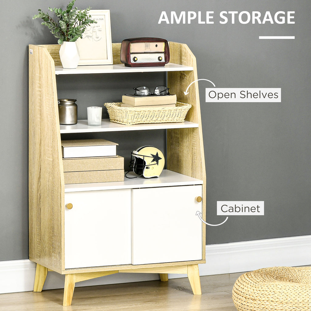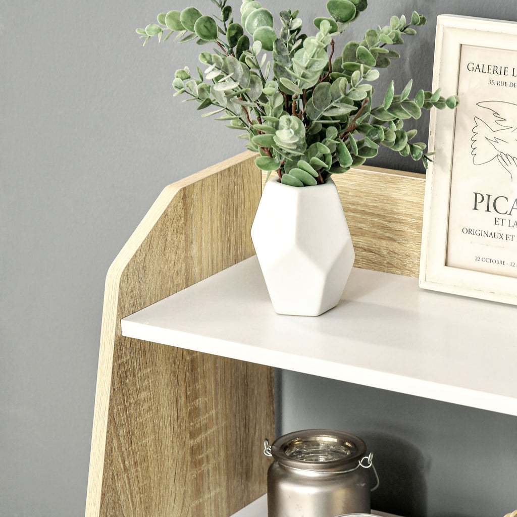 Finden Sie eine Aufbewahrungslösung für Ihr Wohnzimmer, Schlafzimmer oder Spielzimmer mit dieser originellen Aufbewahrungseinheit im verspielten Stil. Dieses moderne Sideboard verfügt über ein 2-stufiges offenes Regal und einen Schrank, die Ihnen Ausstellungs- und Stauraum bieten, um perfekt in kompakten Räumen zu arbeiten.