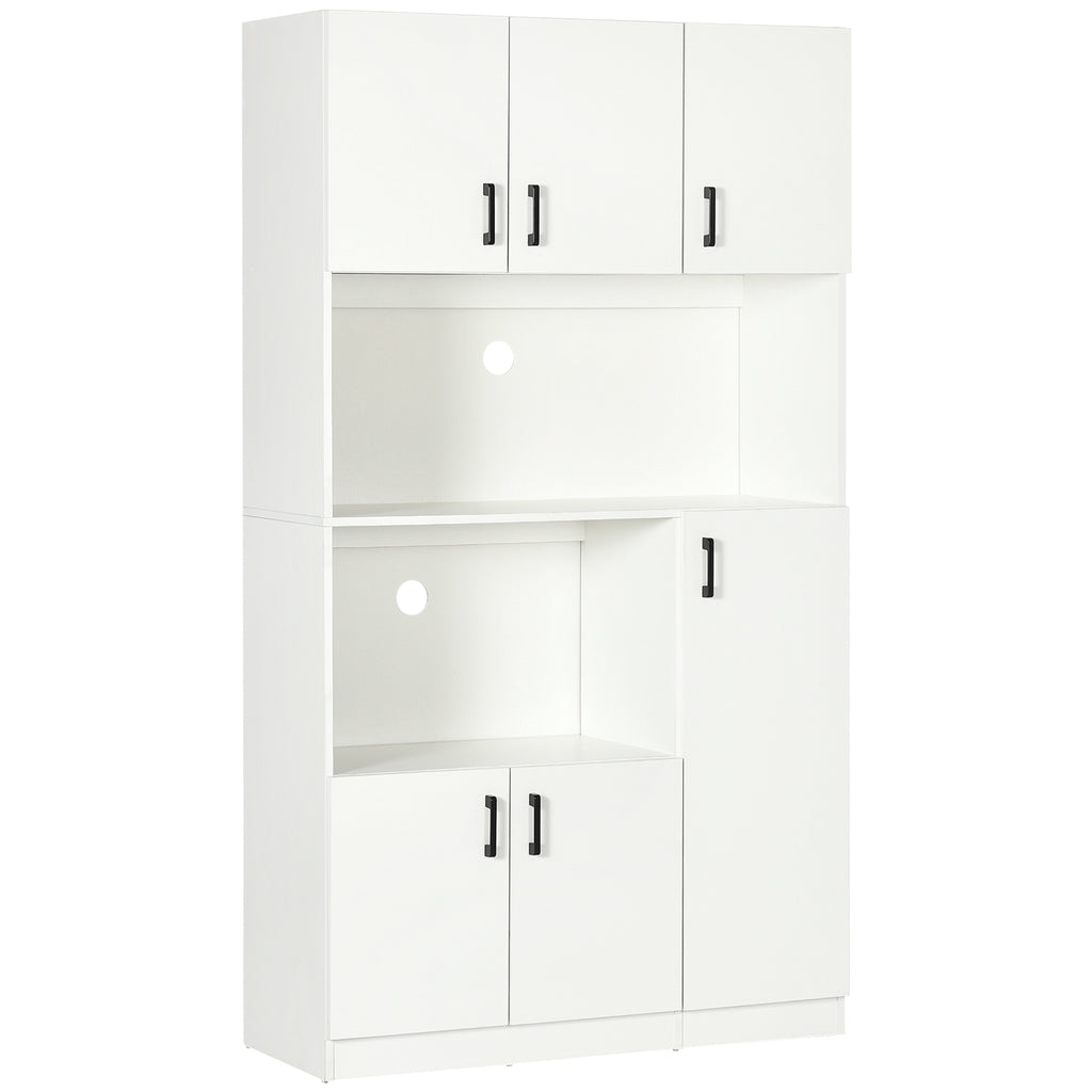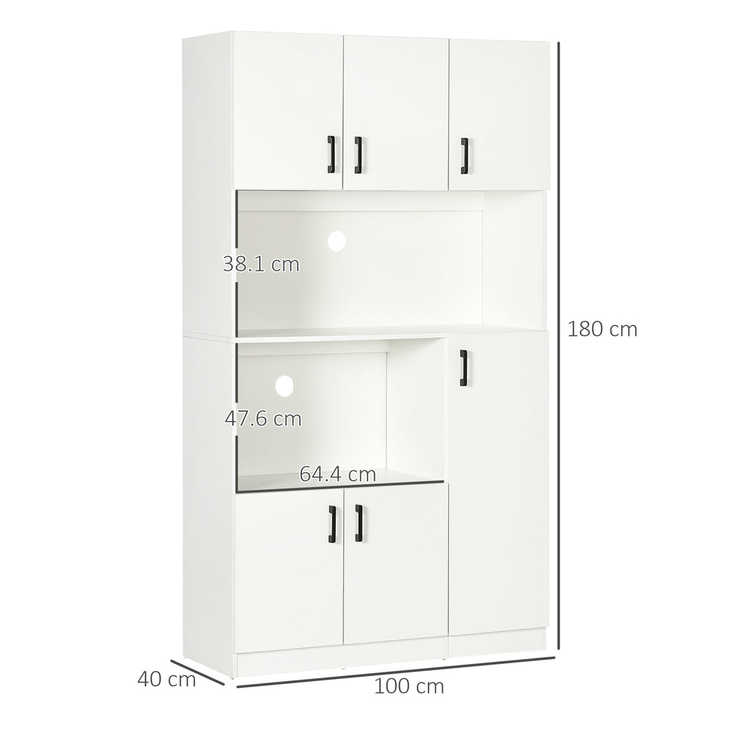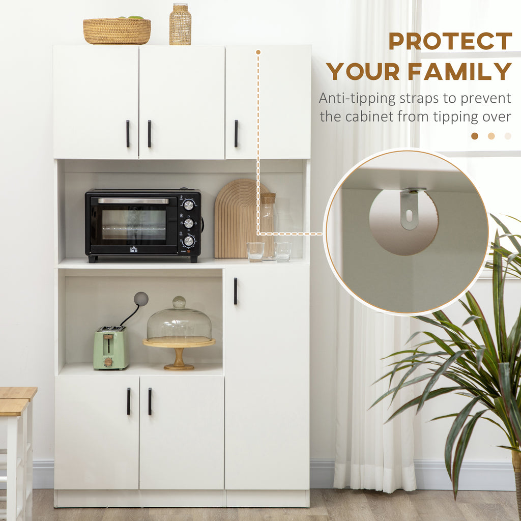- VIEL PLATZ: Die vielen Regale dieses Vorratsschranks bieten ausreichend Platz für all Ihr Geschirr, Kochbücher, Töpfe oder Plastikbehälter. Der zentrale offene Raum und das Fach können Geräte wie eine Mikrowelle oder eine Kaffeemaschine aufnehmen. Die 6 Türen ermöglichen es Ihnen, Ihre Gegenstände zu ordnen, um sie sicher und staubfrei aufzubewahren. Wenn Sie größere Gegenstände haben, können Sie die innere Ablage an Krüge, Nudelbehälter und Mixer anpassen