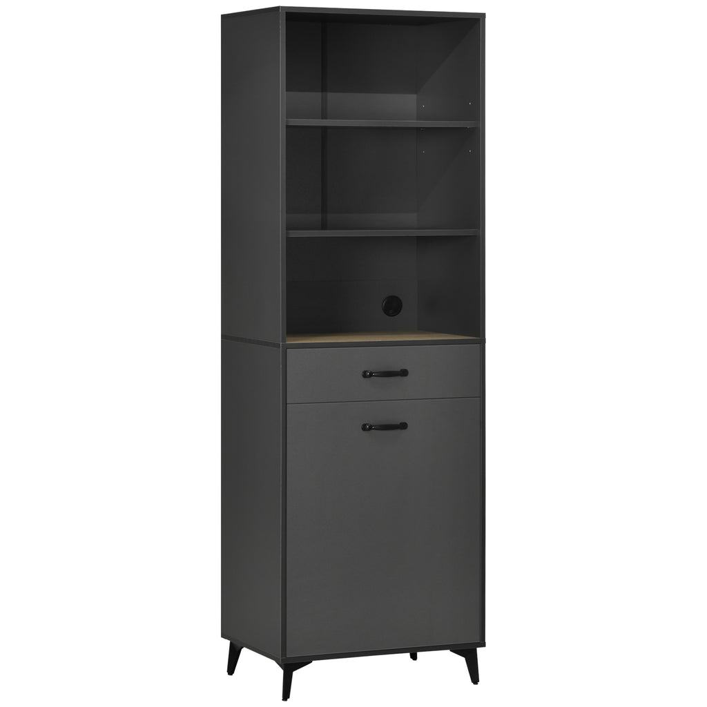 - TUTTO IN UNO: Vuoi sfruttare al meglio lo spazio a disposizione? La combinazione di ripiani aperti e armadietti rende questo mobile dispensa ideale per gli spazi più piccoli che richiedono compattezza e organizzazione. È inoltre progettato con un foro passacavi per mantenere libero il piano del tavolo