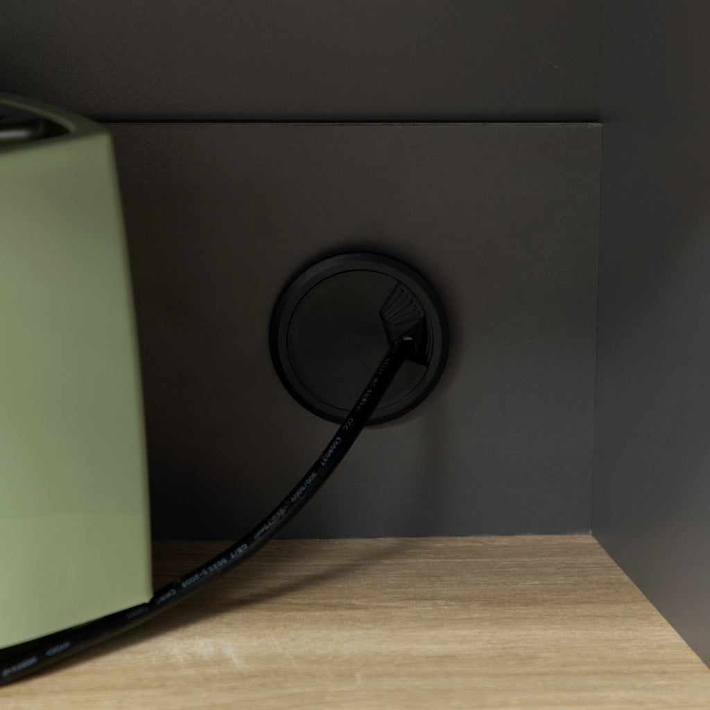 - Progettato con foro passacavi per liberare il tavolo