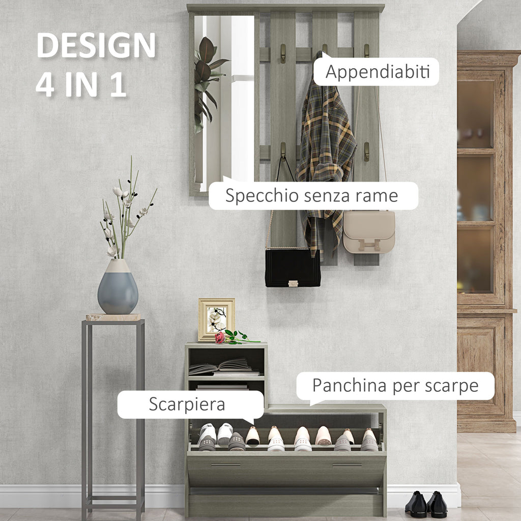 Mobile Guardaroba per Ingresso con Specchio Appendiabiti e Scarpiera Regolabile Grigio
