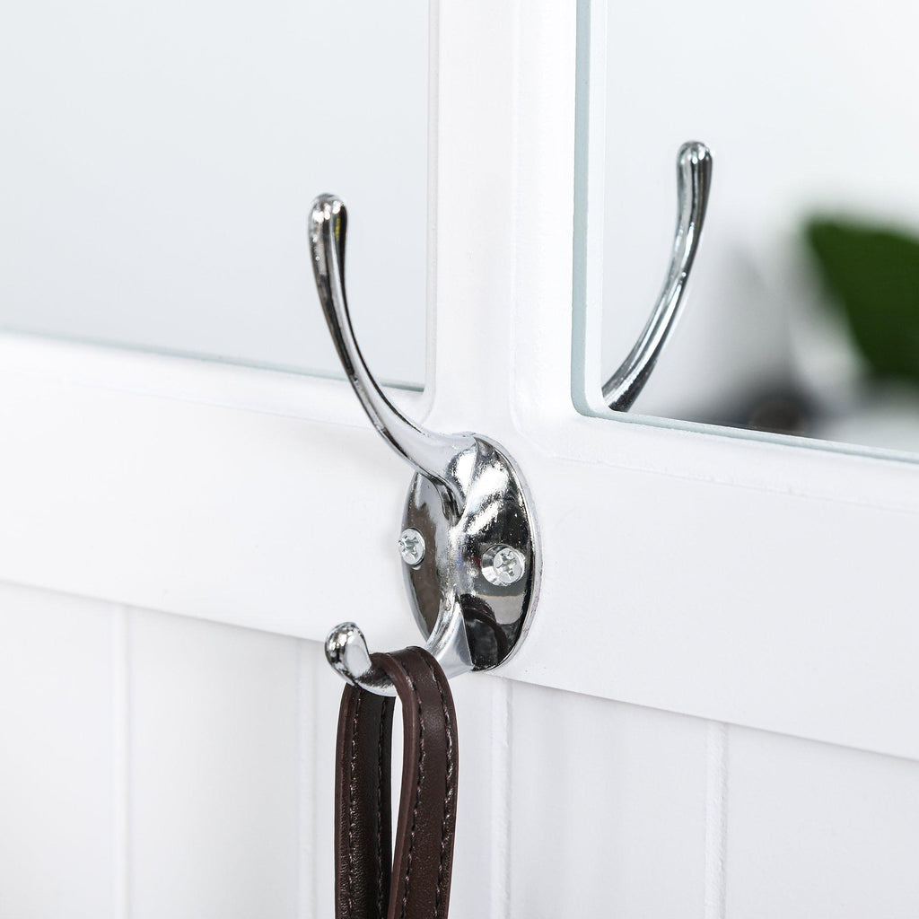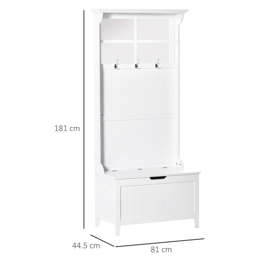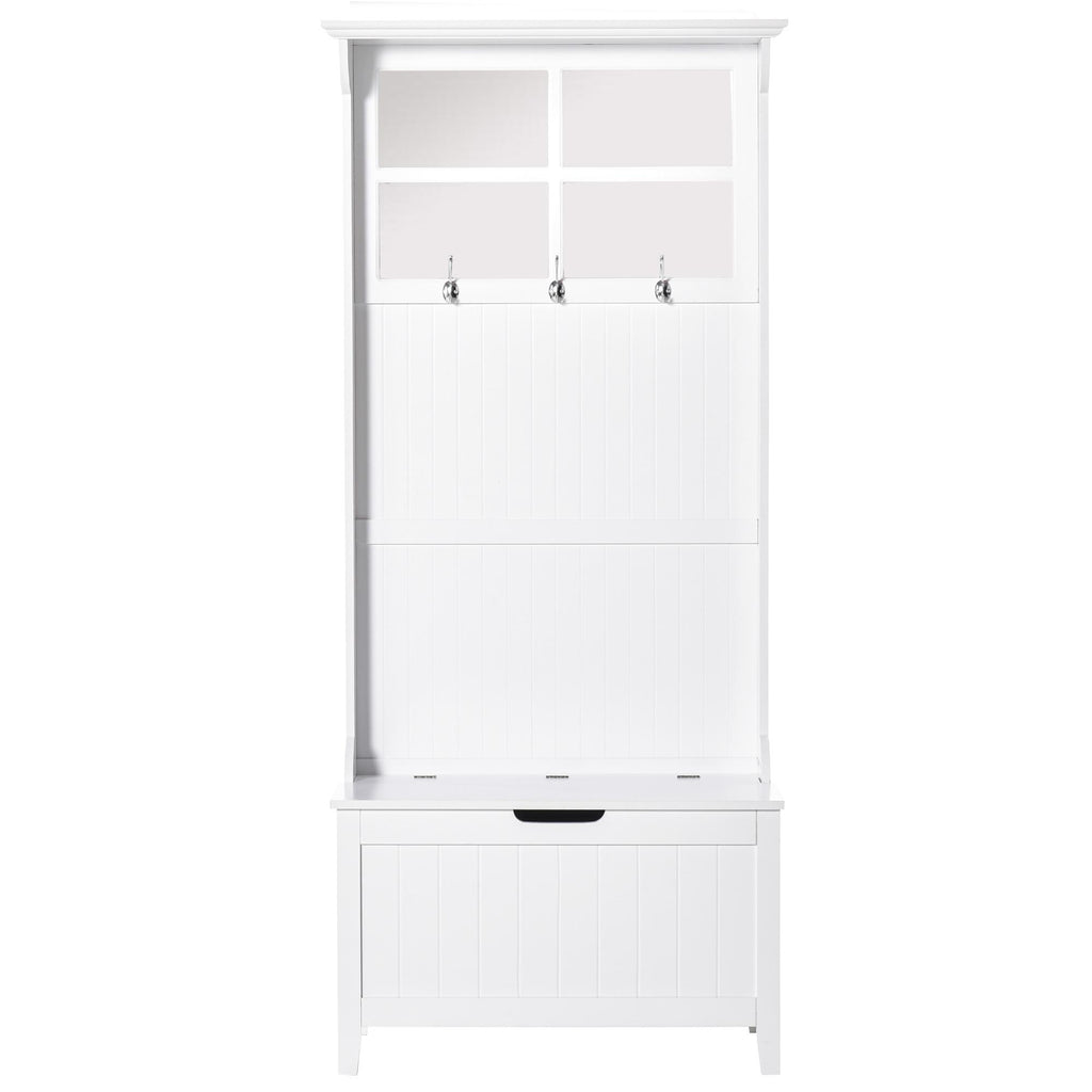 Mäntel, Taschen, Schuhe und andere Accessoires an einem Ort aufzubewahren war noch nie so einfach wie mit der Wandgarderobe. Aus hochwertiger, stabiler MDF-Platte gefertigt, verfügt es über eine Bank mit Stauraum, eine Garderobe mit 3 Haken, eine obere Ablage und 4 Spiegel. Das Anti-Kipp-Design sorgt dafür, dass der Kleiderständer immer stabil steht, wenn Sie ihn verwenden. Durch die weiße Lackierung lässt sich das Möbelstück perfekt in jede Einrichtung und in jeden Raum integrieren.