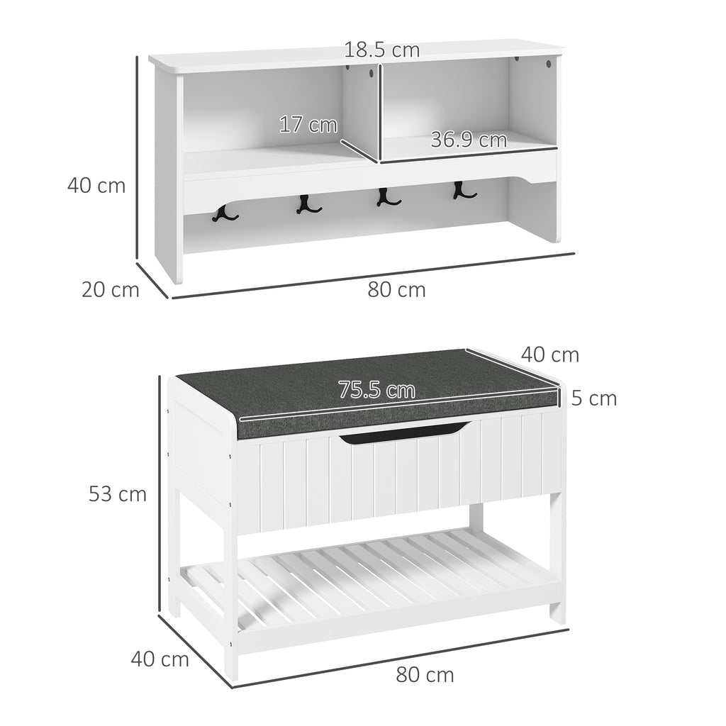 Mobile Ingresso con Scarpiera e Appendiabiti 80x20x40 cm in MDF e Poliestere Bianco