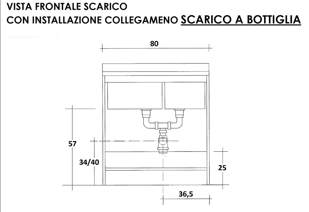 Waschbeckenschrank in Nobilato 80x60x85cm 2 Türen mit 2 Becken und Platte aus thermoplastischem Montegrappa Marella White