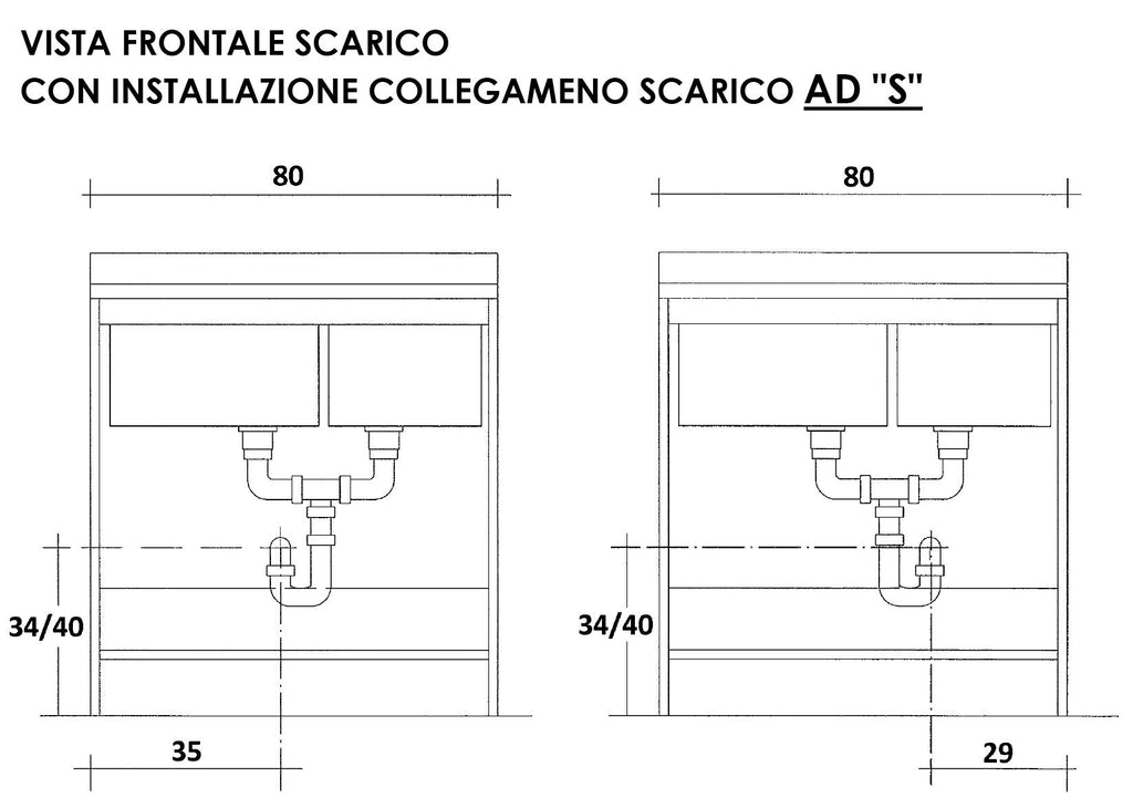 Waschbeckenschrank in Nobilato 80x60x85cm 2 Türen mit 2 Becken und Platte in Weiß Montegrappa Marella Thermoplast mit Korb