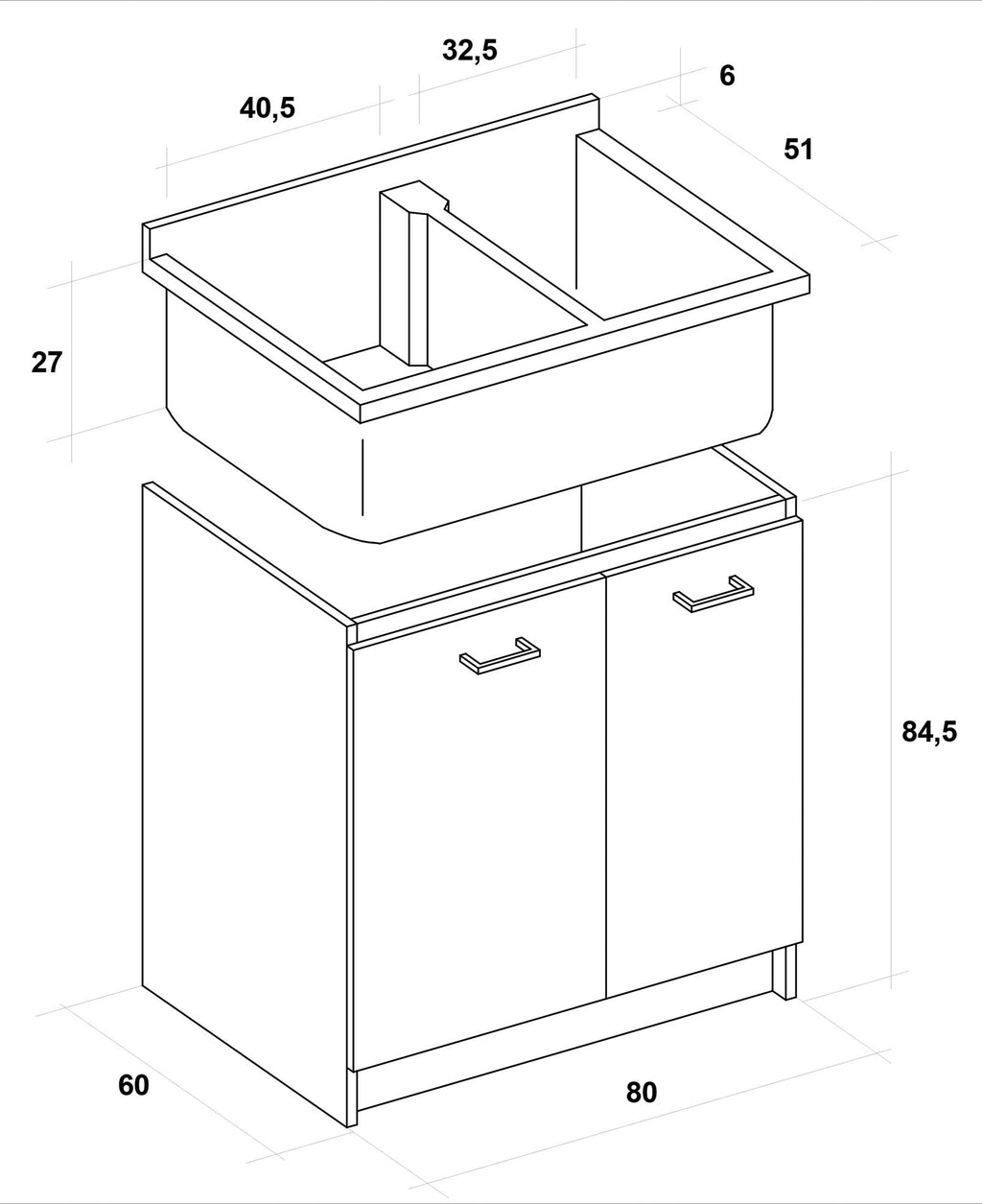 - Abmessungen (LxBxH): 80 x 60 x 85 cm