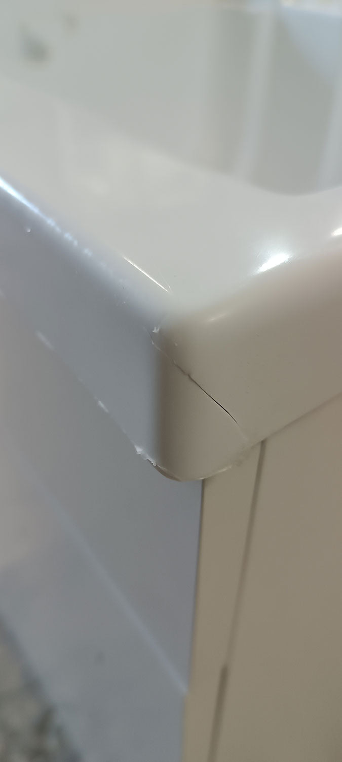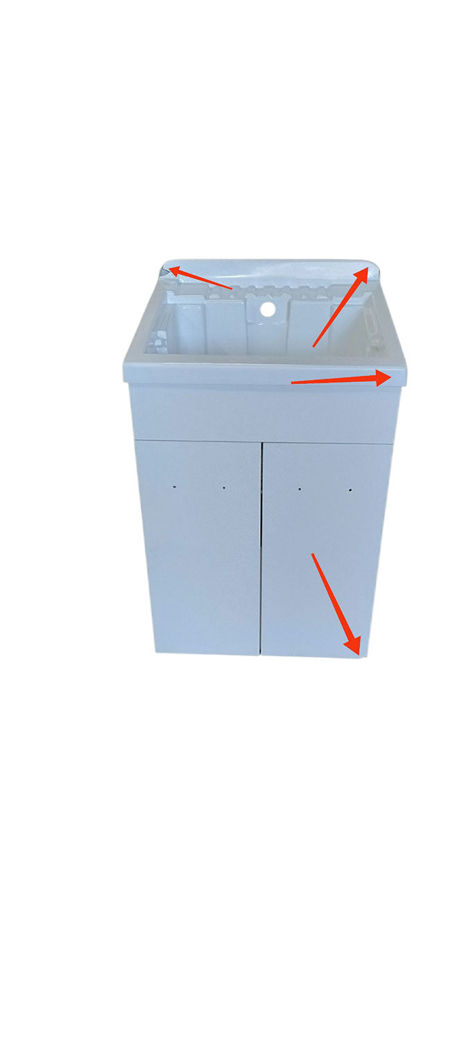 Mobile lavanderia realizzato in nobilitato classe E1 da 1.8 cm bordato con colle poliuretaniche e vasca in ABS predisposto per il foro su entrambi i lati della vasca.