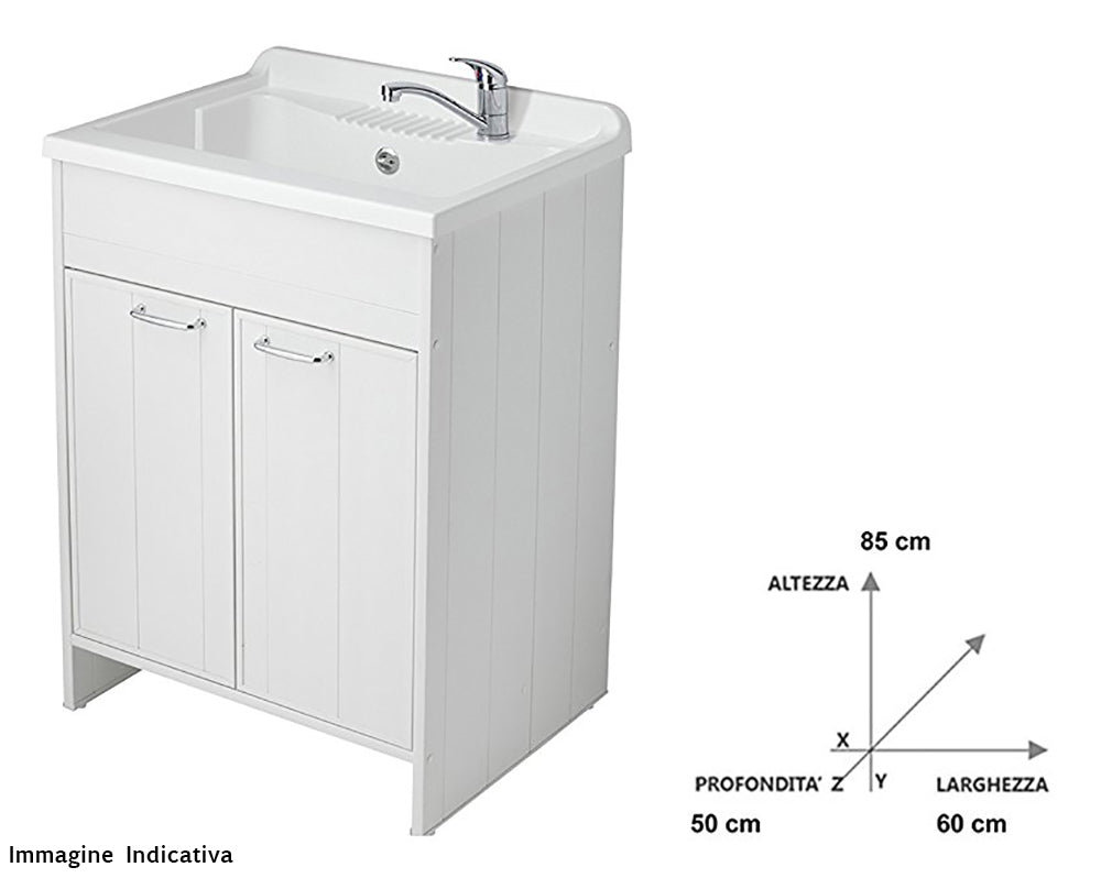 Waschbeckenschrank aus PVC 60x50x85cm 2 Türen mit Waschbrett Forlani Washouse Ash