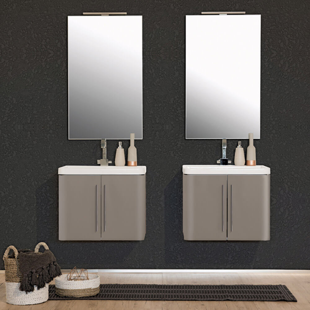 Waschbeckenunterschrank 50,5 x 50,5 x 56 cm 2 Türen aus Melamin und Aluminium Montegrappa Novella Dipiù Tortora
