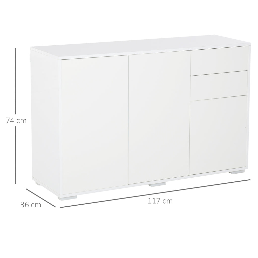 Mehrzweckschrank 117 x 36 x 74 cm 2 Schubladen 3 weiße Türen