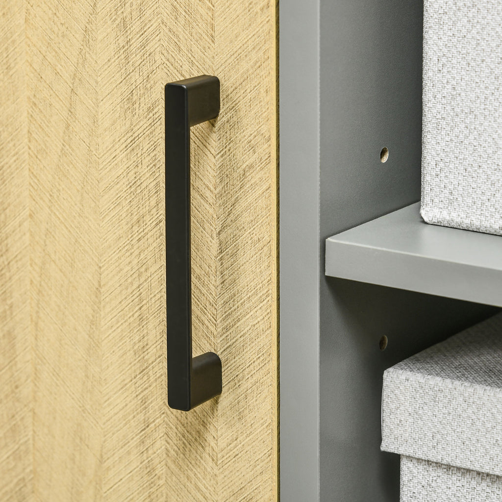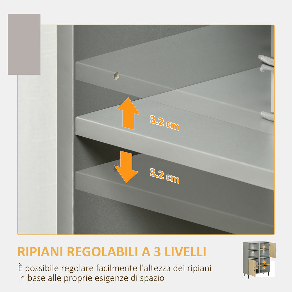 Per mantenere la tua casa elegante e ordinata questo mobile multiuso è la scelta perfetta. Il mobile da cucina è dotato di due armadietti a 2 livelli e 4 ripiani aperti con uno spazio regolabile per offrire spazio sufficiente per i tuoi oggetti. Le venature del legno di quercia sui pannelli delle ante si abbinano al corpo grigio per renderlo elegante e moderno, adatto a ogni stanza della tua casa.