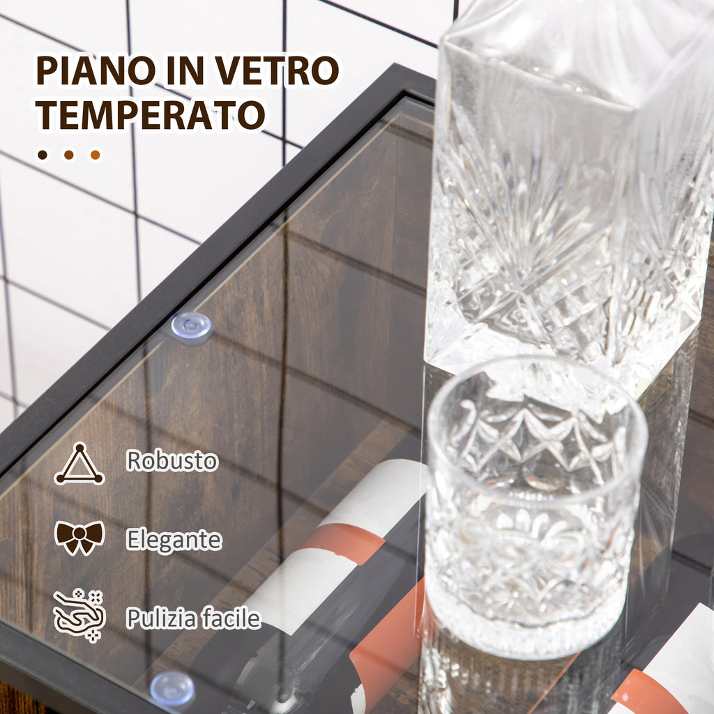 Mehrzweckschrank mit Flaschenhalter 60 x 40 x 100 cm aus Glasmetall und brauner Spanplatte