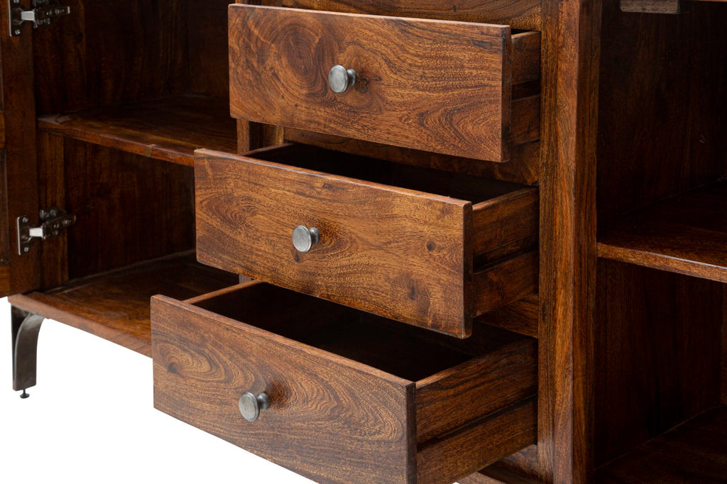 Mustang Schrank 175 x 40 x 75 cm aus Akazienholz und braunem und grauem Eisen