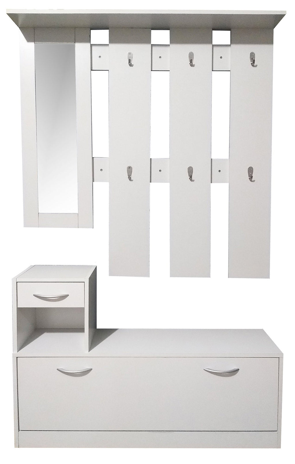Flurmöbel, Schuhregal, Garderobe und Spiegel aus weißer Spanplatte