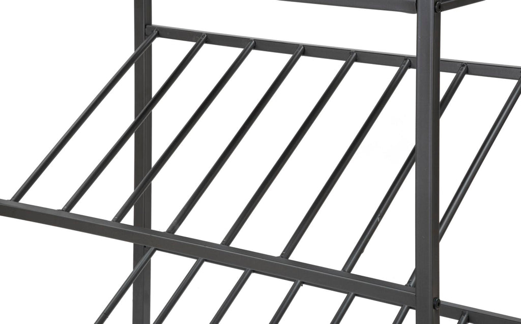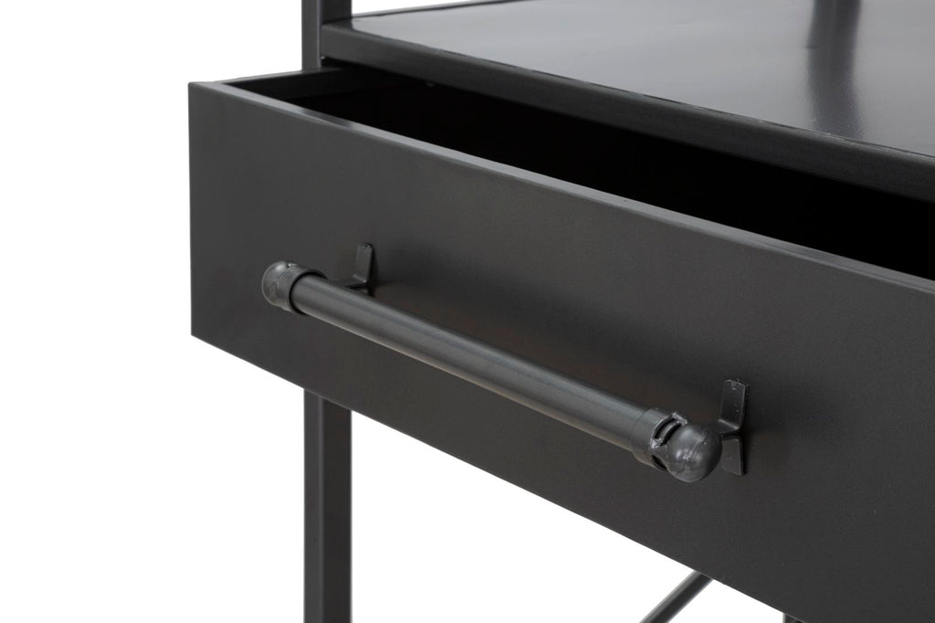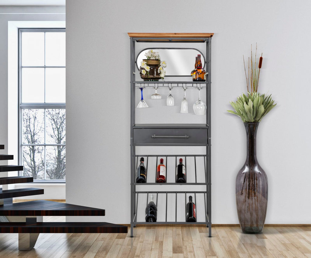 Schrank im Industriestil mit Metallschublade, Spiegel, Getränkehalter und Flaschenhalter mit 14 Plätzen. Die entschiedenen Linien verleihen der Eckbar einen Hauch von Einzigartigkeit, ohne auf Schlichtheit zu verzichten.