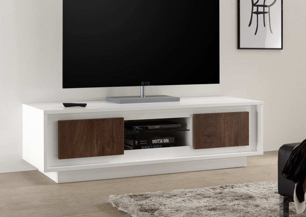 TV-Schrank 2 Türen 156 x 50 x 45 cm in weißem TFT-Rahmen und Eichenholz