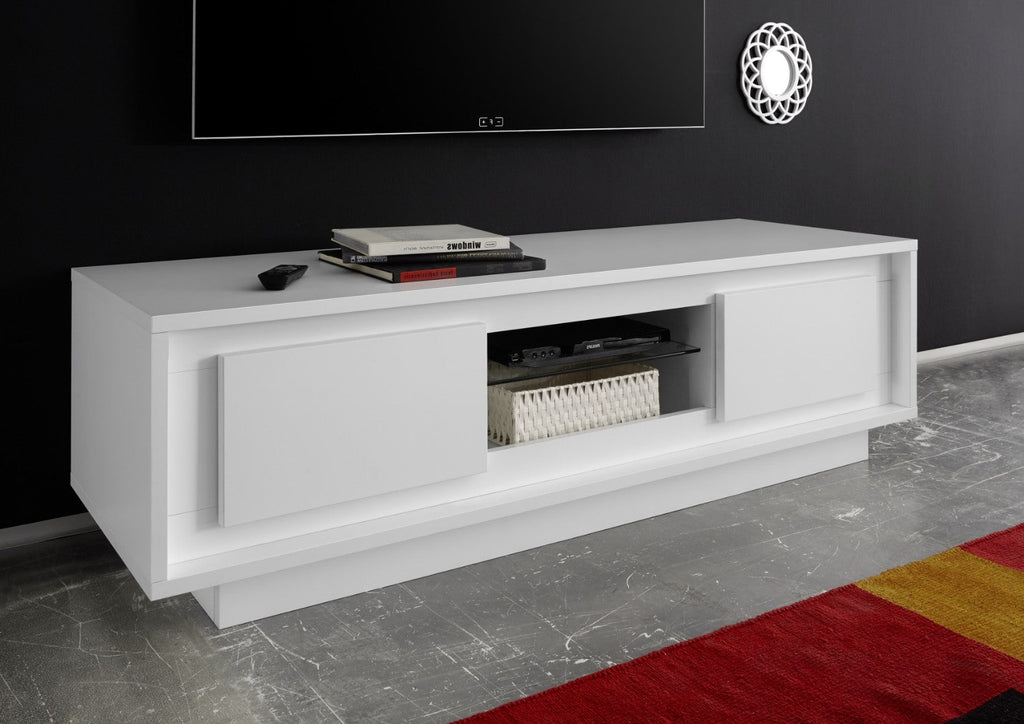 TV-Schrank 2 Türen 156 x 50 x 45 cm in mattweißem TFT-Rahmen Holz