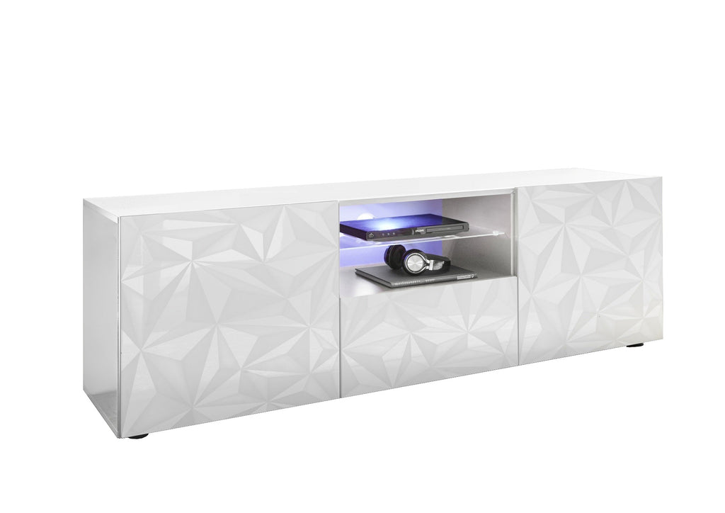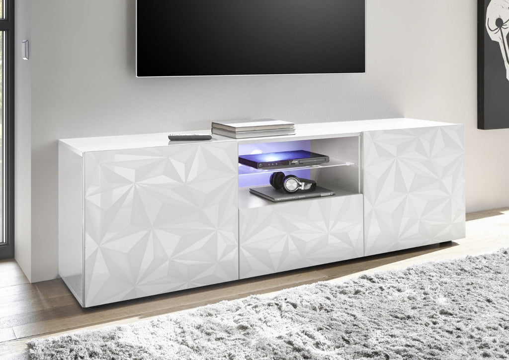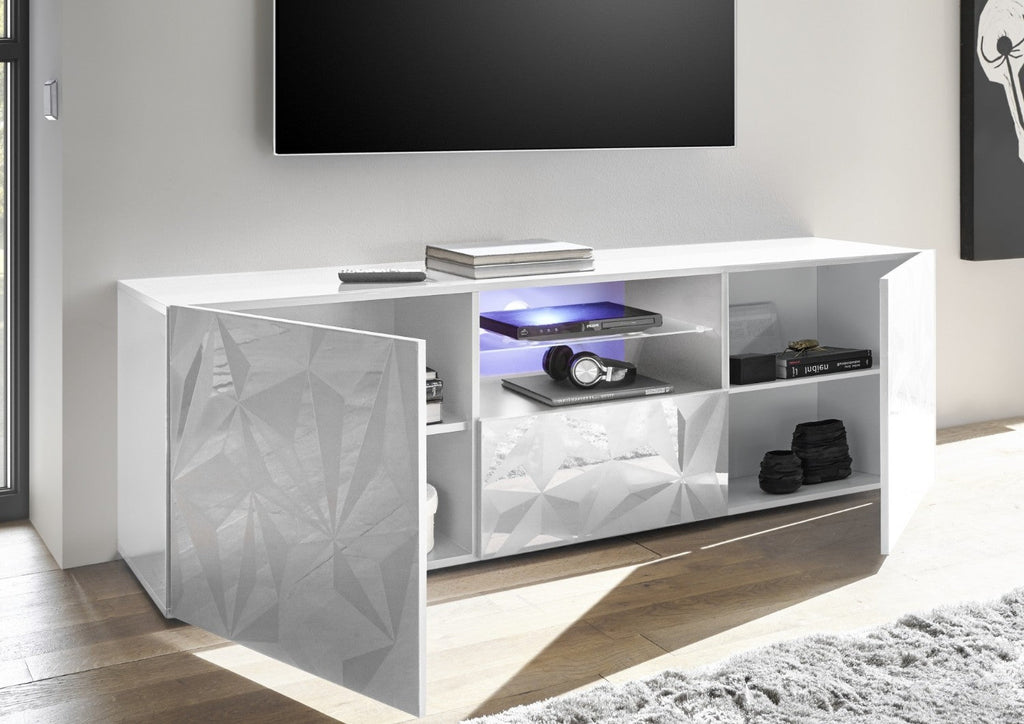 TV-Schrank 2 Türen 180 x 42 x 57 cm in Prague Glossy White TFT Wood