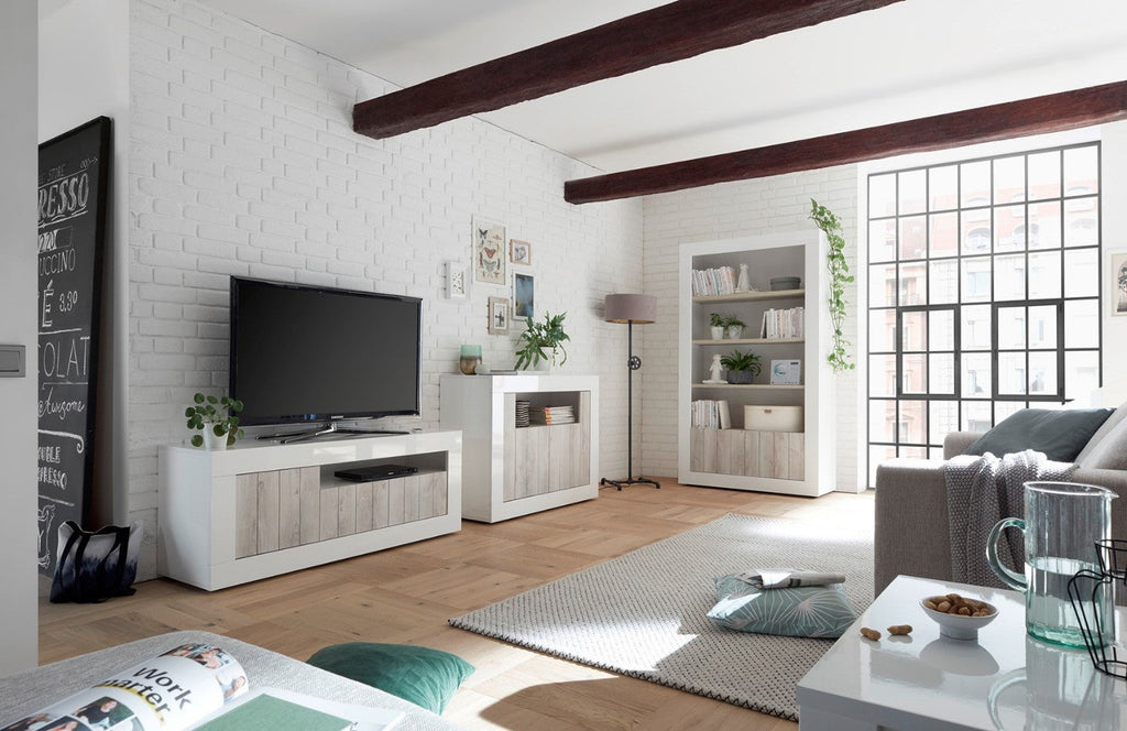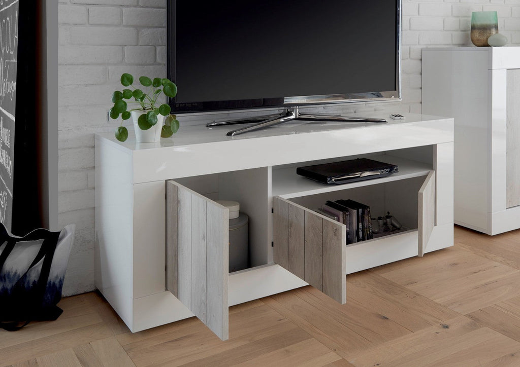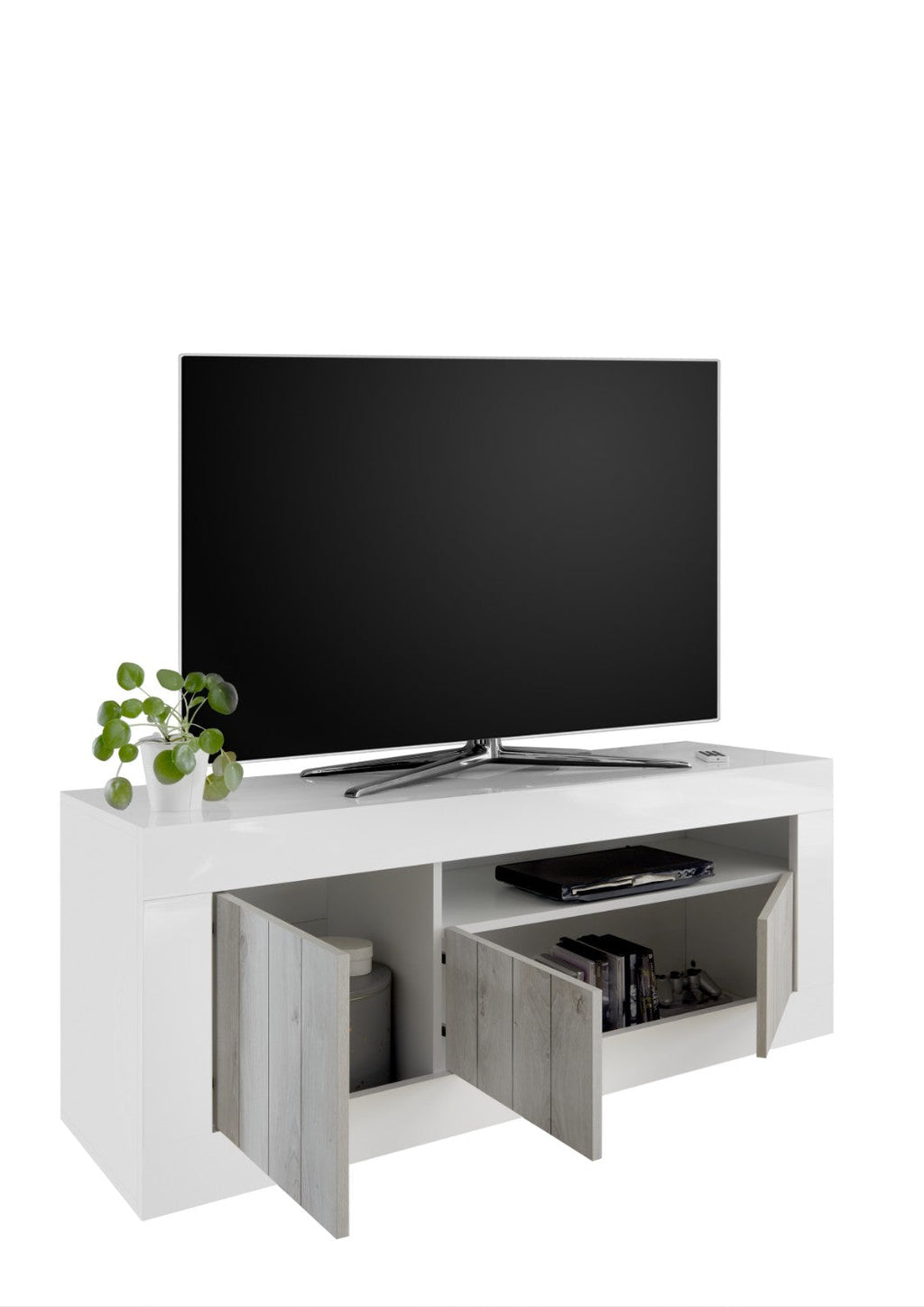TV-Schrank 3 Türen 138x42x56 cm in Lipari Weiß TFT Holz und Kiefer