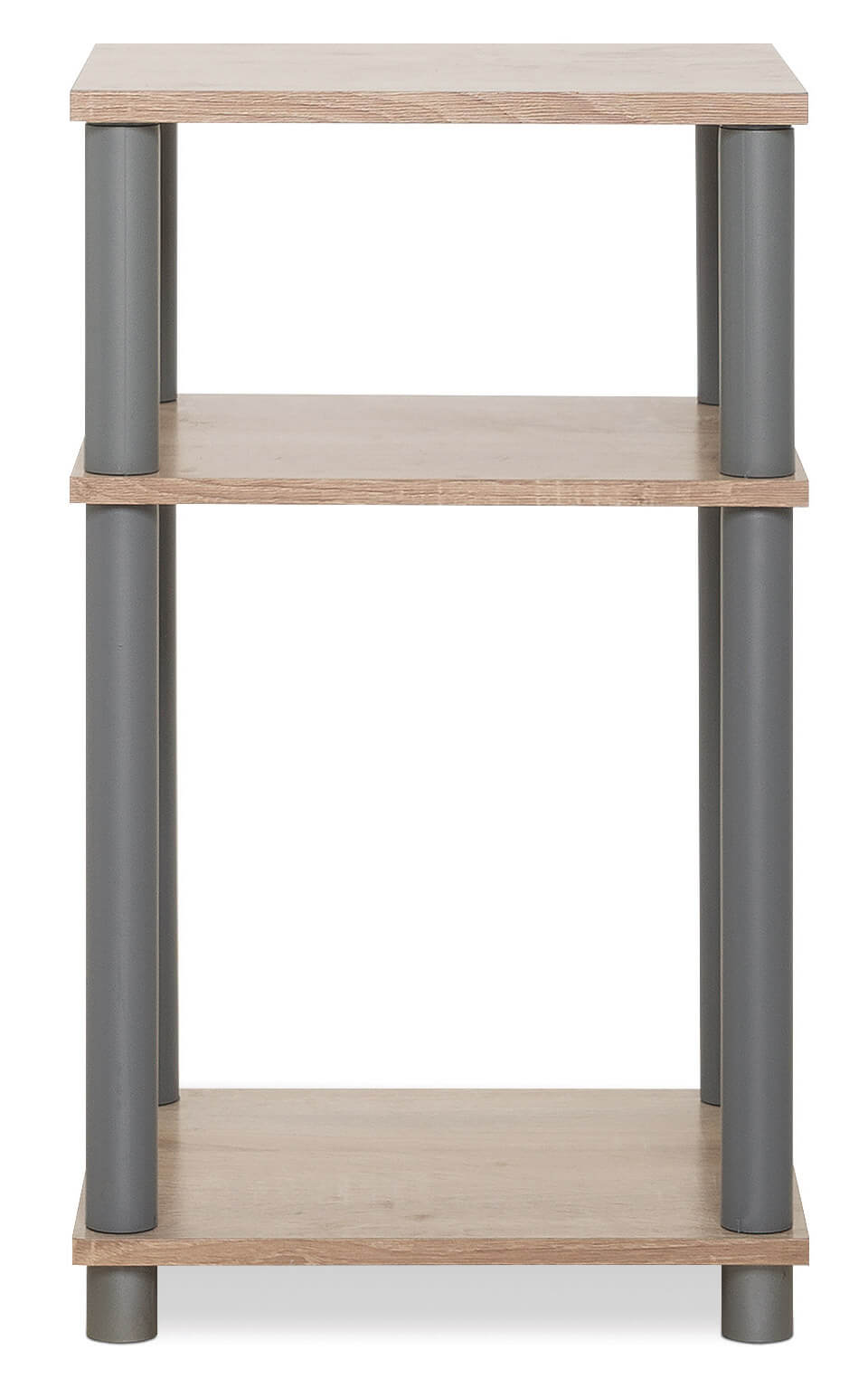 Regal (Telefonhalter) aus 12/15 mm Spanplatte mit Melaminbeschichtung in Eichenfarbe mit grauen Hartplastikrohren. Ideal für junge und funktionale Umgebungen, Made in Germany.