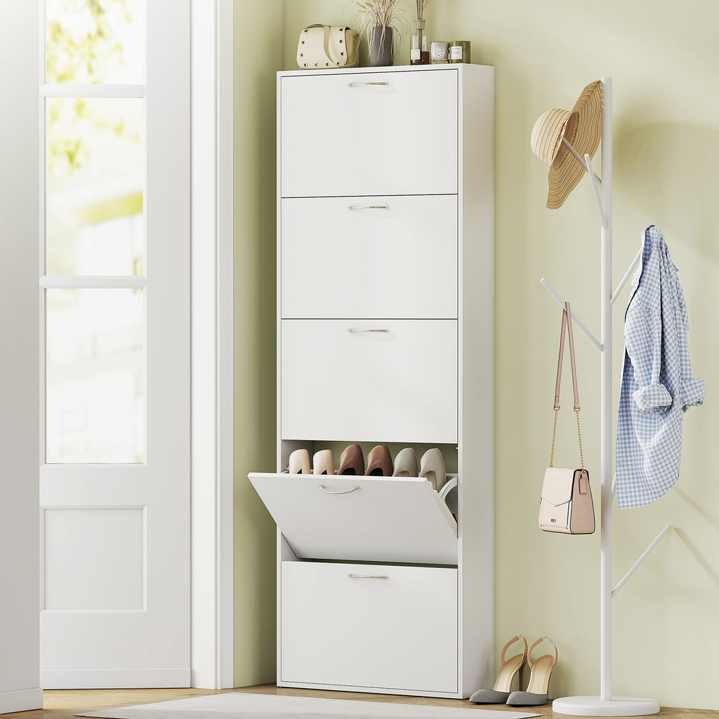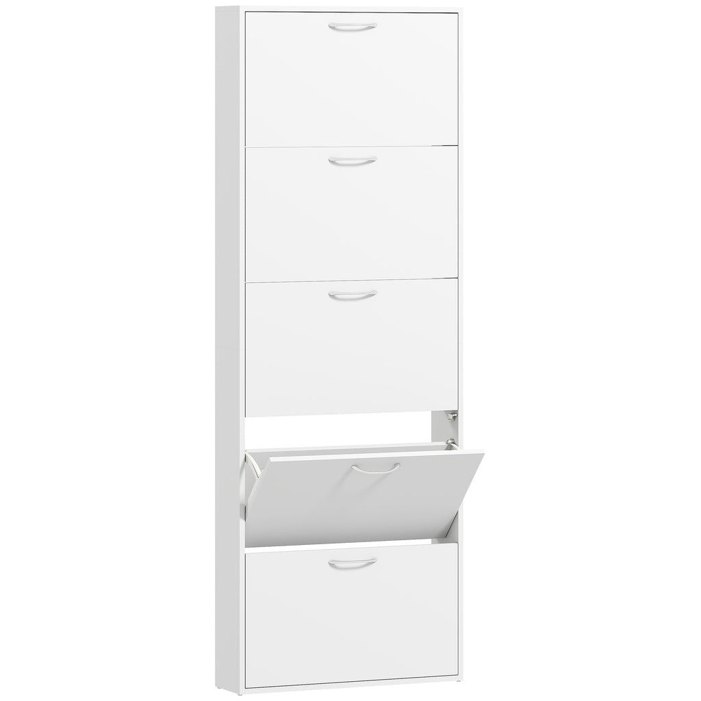 Mobile Scarpiera a 5 Ante Antiribaltamento 65x17x180.5 cm in Legno Bianco