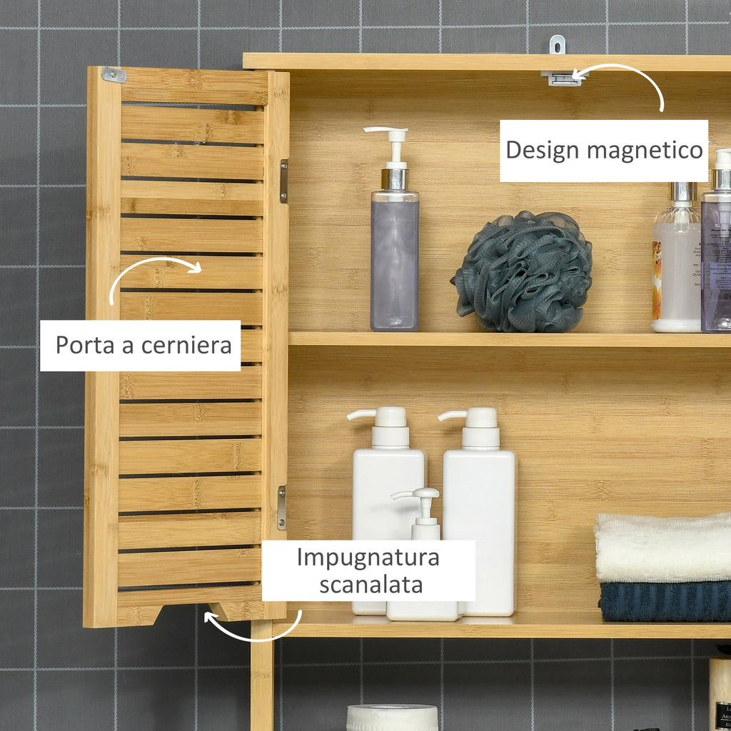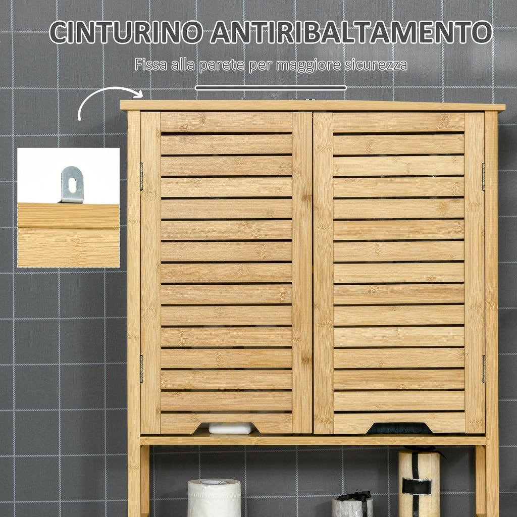 Platzsparender Schrank über Toilette 60 x 23 x 173 cm aus MDF und natürlichem Bambus