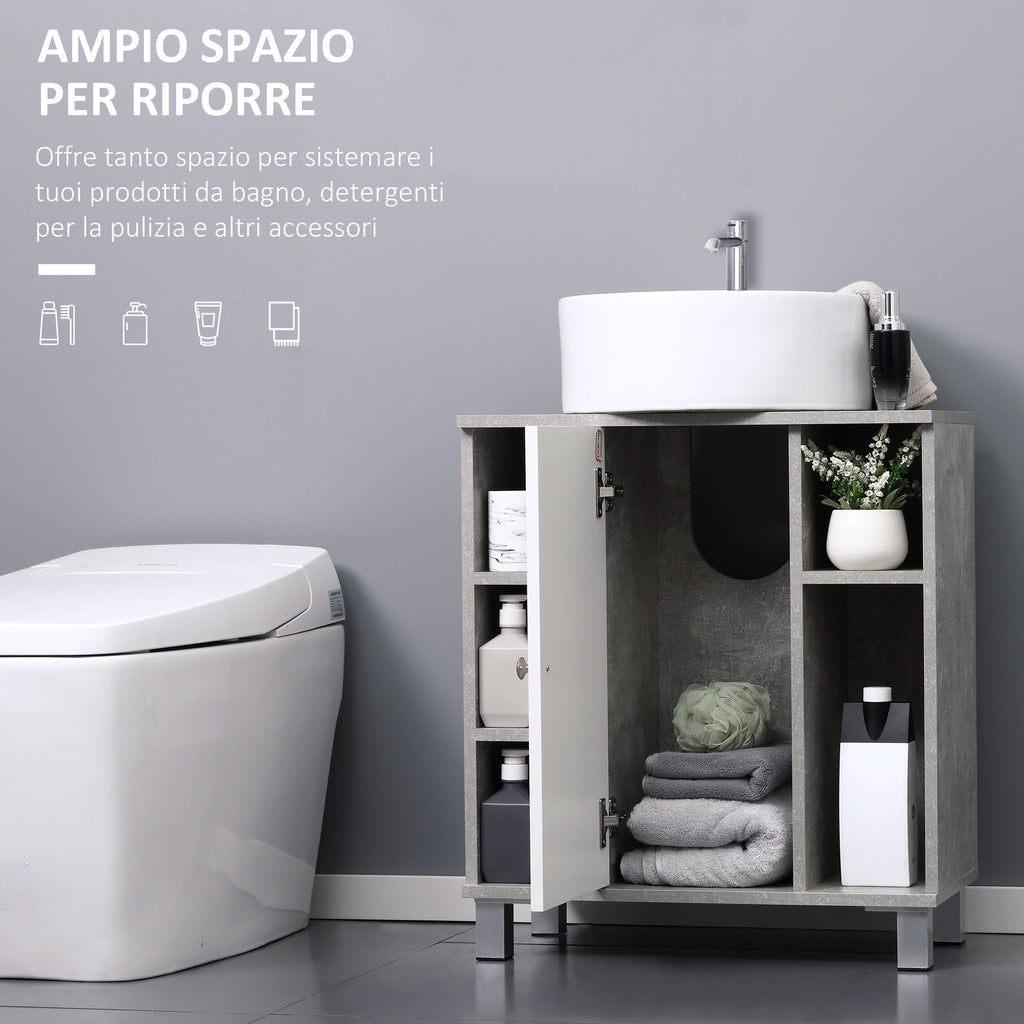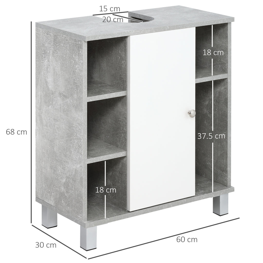 Waschbeckenunterschrank 6 Regale 1 Tür 60 x 30 x 68 cm in grauem Holz