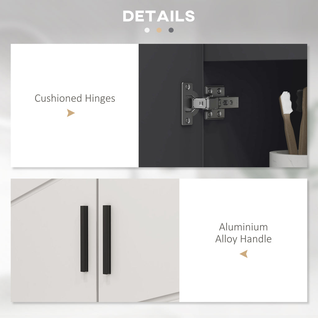 - SOLIDA STRUTTURA: Questo armadietto bagno è realizzato con una solida struttura in pannelli di legno truciolare. La superficie è rivestita per resistere agli schizzi d'acqua e le cerniere ammortizzate rallentano la chiusura delle ante