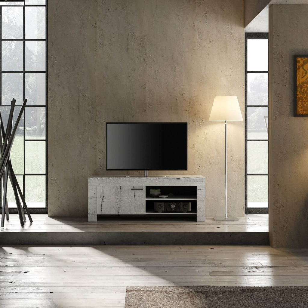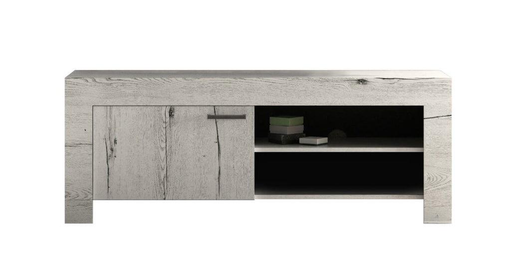 TV-Schrank 1 Tür 2 Regale in Melamin 140 x 43 x 53 cm TFT Snow Oak Snow