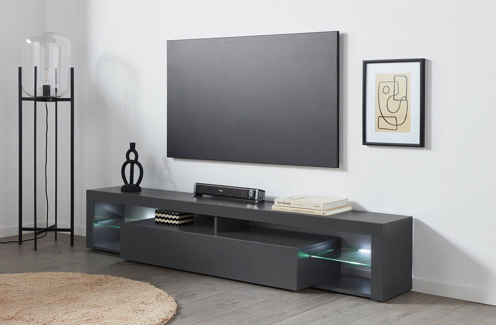 Mobile Tv 1 Anta a Ribalta e Ripiani a Giorno 200x40x35 cm Essential 1R Grigio Antracite Opaco