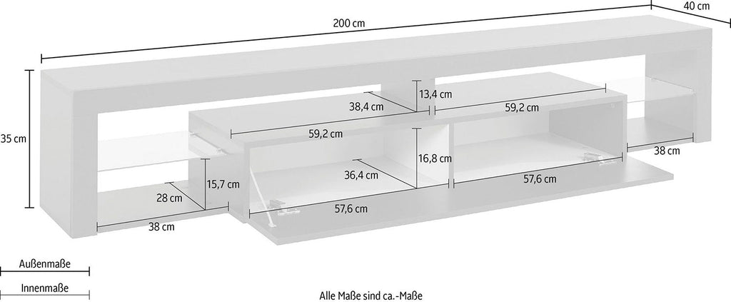 - Dimensioni mobile tv: 200x40x35 cm (LxPxA)