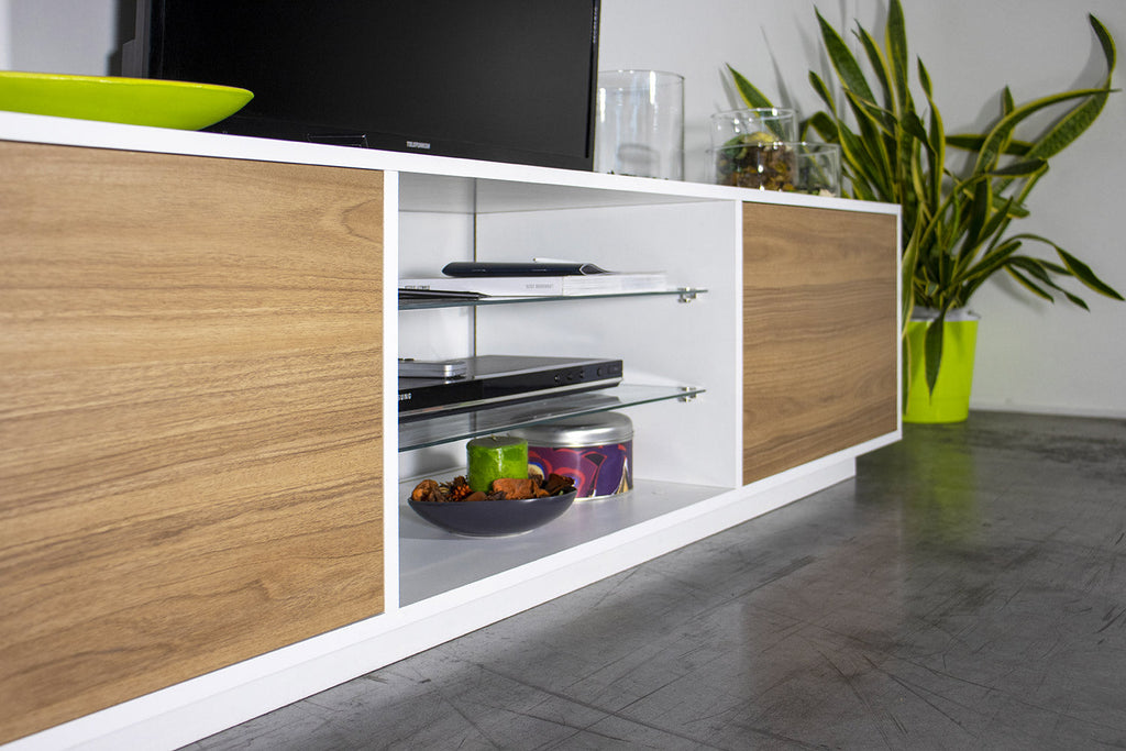 Il porta tv BLOOM da 180 cm è un mobile per il soggiorno dal design estremamente moderno e lineare, disponibile sia in tinta unita sia in doppia finitura dal colore a contrasto. Il complemento d’arredo si inserisce facilmente in ogni contesto abitativo, donando eleganza e fornendo ampio spazio di archiviazione.