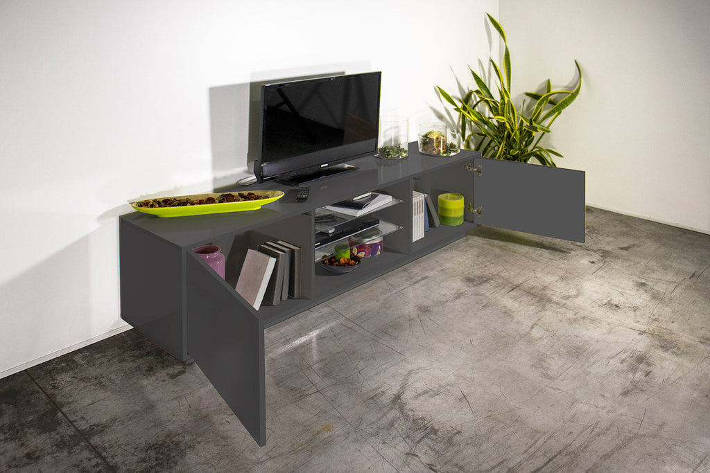 Mobile TV 2 Ante 180x41,4x46 cm Bloom Grigio Antracite Laccato Lucido