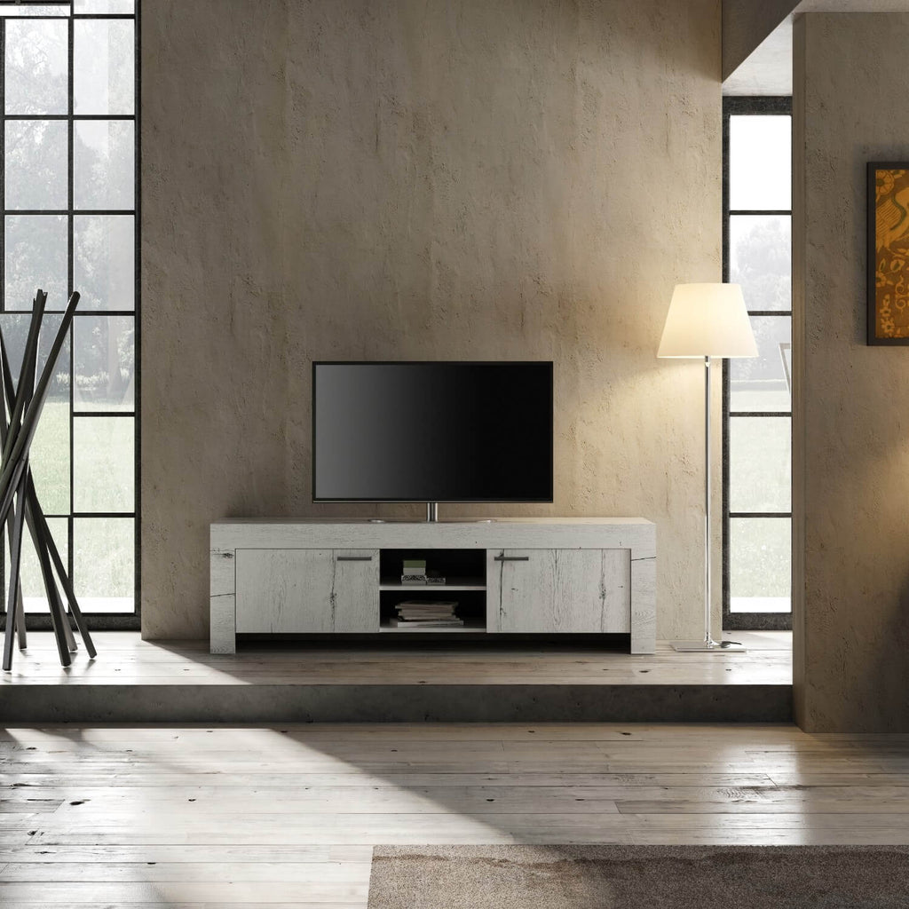 TV-Schrank 2 Türen 3 Regale in Melamin 180x43x53cm TFT Snow Oak Snow