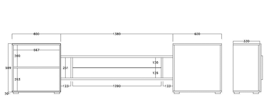 TV-Schrank 2 Türen 5 Regale in Melamin 258 x 37 x 61 cm TFT Build Weiß Schwarz