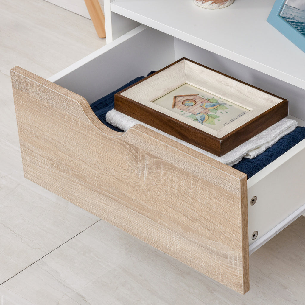 - Belastbarkeit: 60 kg (insgesamt), 10 kg (Regal), 10 kg (Schublade)