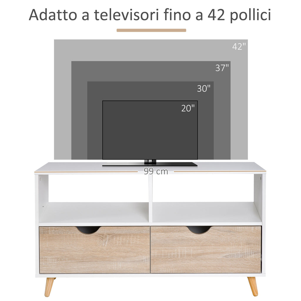 TV-Schrank 2 Schubladen 2 Regale 99 x 39 x 58 cm in weißem Holz