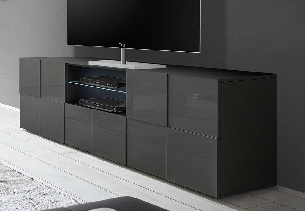 Melamin-TV-Schrank mit 2 Türen und 2 Nischen 181 x 42 x 57 cm TFT-Karos glänzend Anthrazit