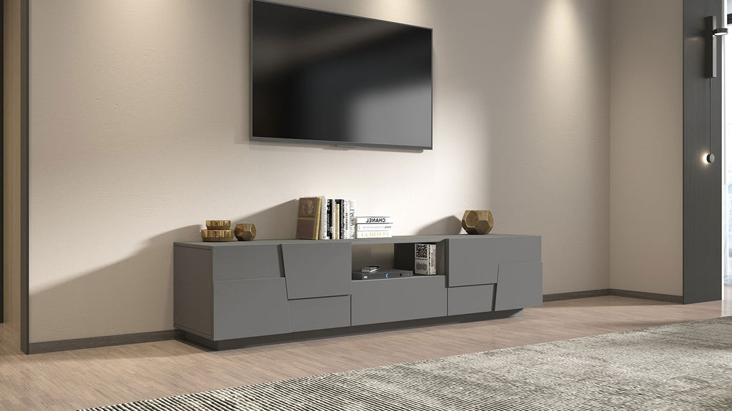 Mobile Tv 4 Anta 1 Cassetto e Ripiano a Giorno 220x44x46 cm Pongo 4A 1C Grigio Antracite Opaco