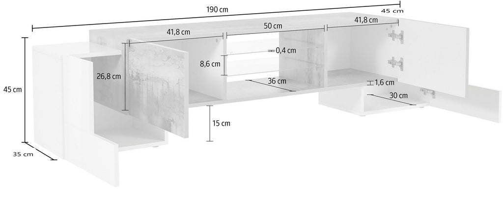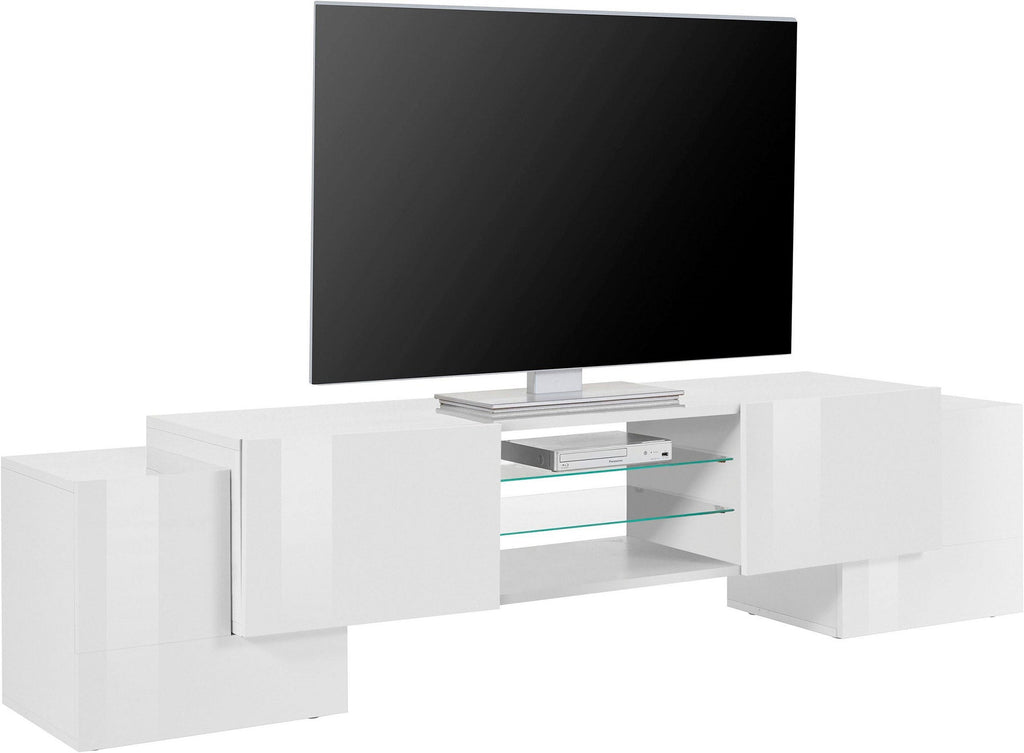 Mobile TV 4 Ante 190x35/45x45 cm Pillon Bianco Lucido