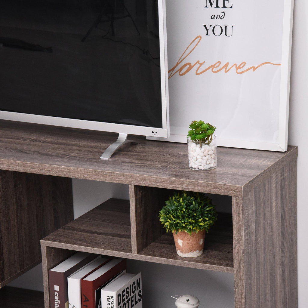 TV-Schrank Bücherregal mit 6 offenen Regalen aus Spanplatte mit Metallfüßen 152,2 x 39,5 x 71 cm Dunkle Eiche