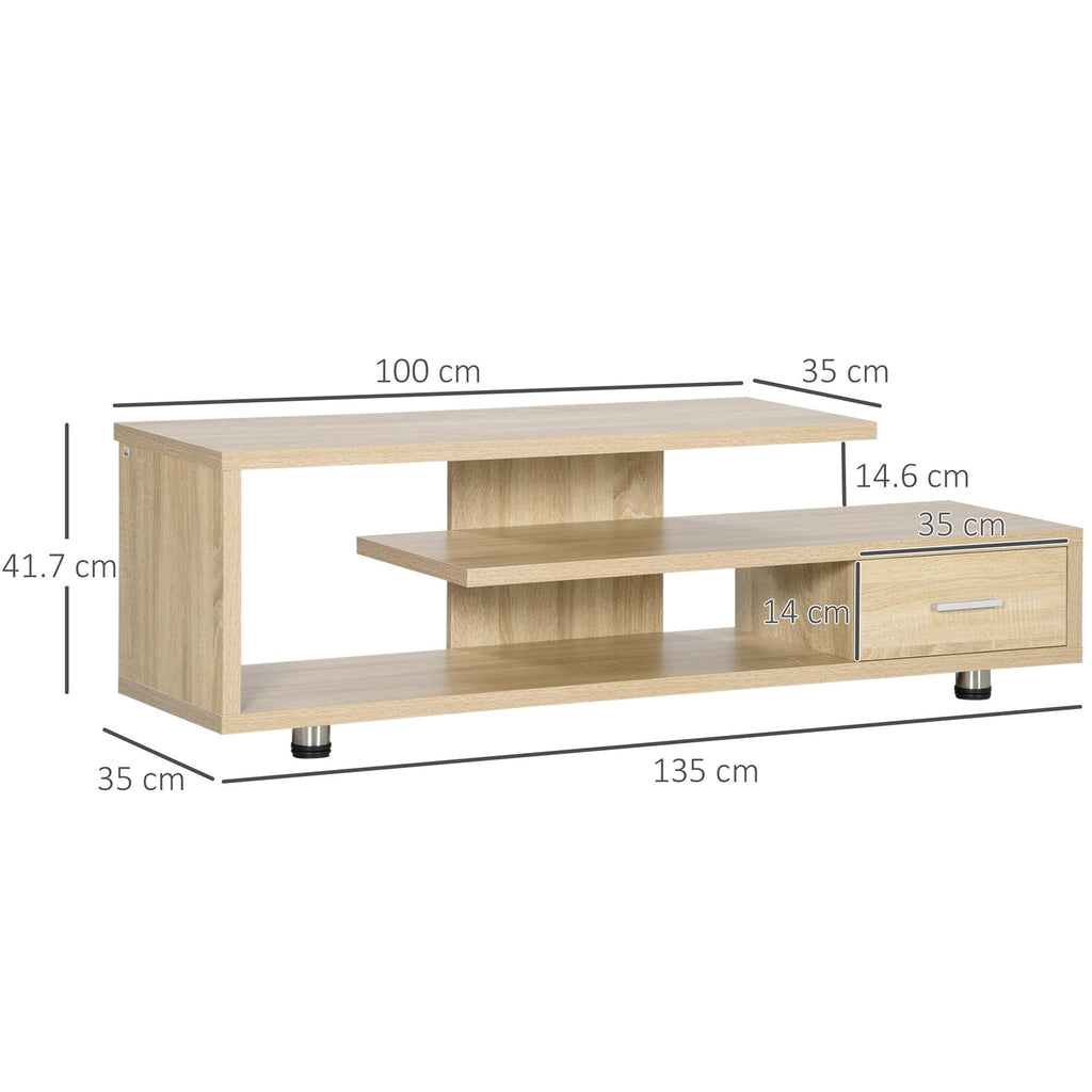 Offener TV-Schrank 135 x 35 x 41,7 cm für Fernseher bis 65 Zoll in Spanplatte natur