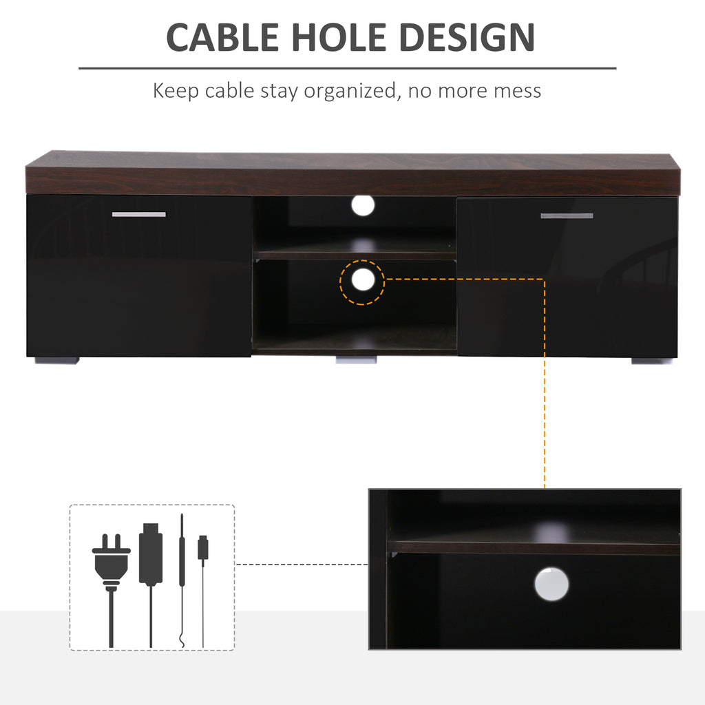 Der untere Teil ist mit zwei schwarzen Türen ausgestattet, die die Möglichkeit bieten, Zeitschriften, DVDs oder andere Gegenstände organisiert aufzubewahren