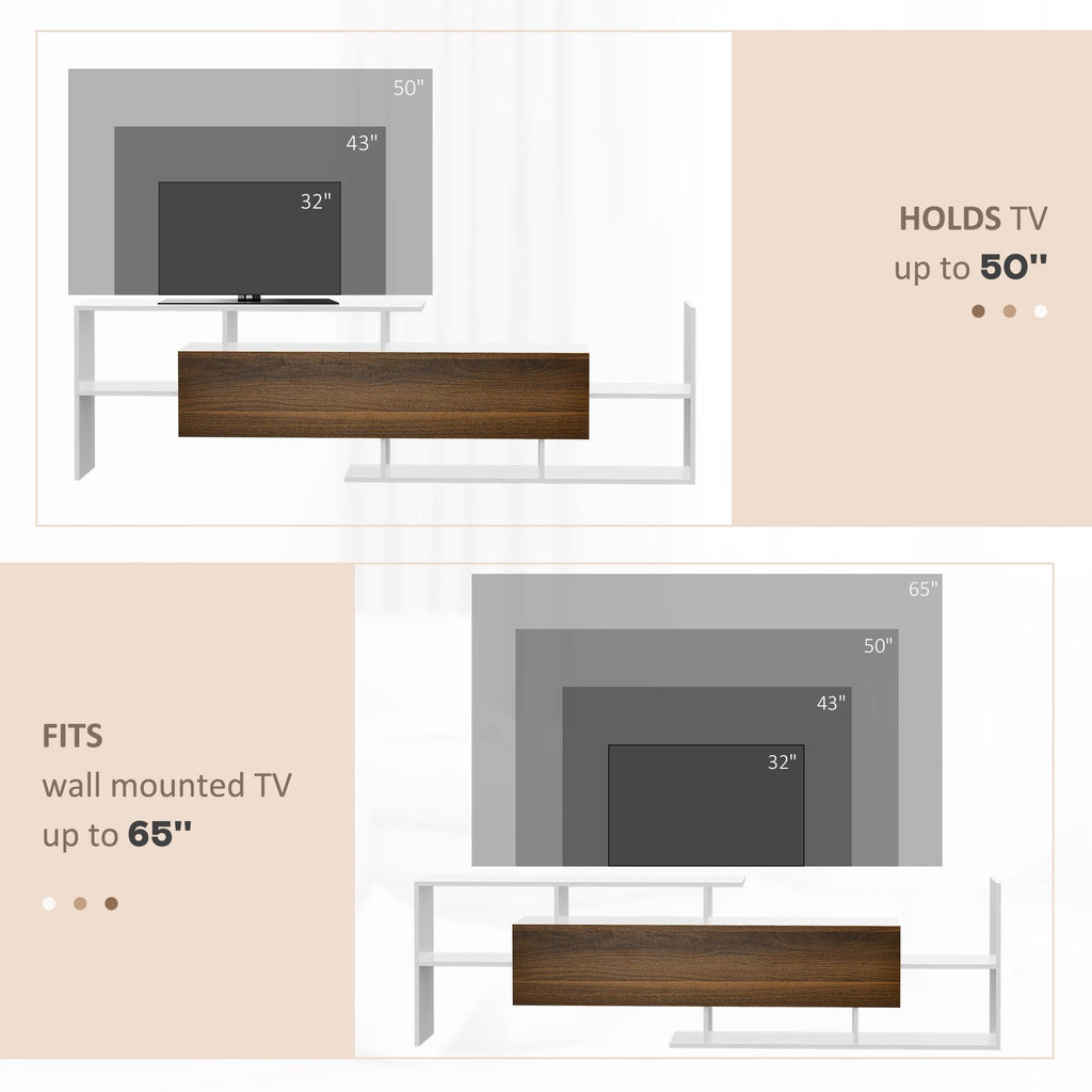 TV-Schrank mit Wandregal aus weißer und brauner Spanplatte
