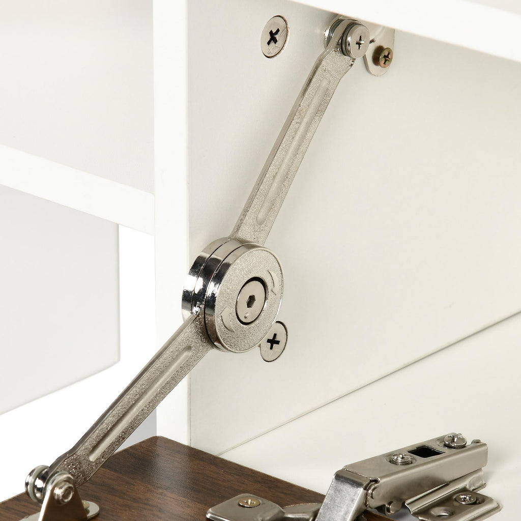 - VIEL PLATZ: Die Tischplatte und mehrere offene Regale bieten viel Platz, um Ihre Dekorationen zu präsentieren. Der herunterklappbare Schrank sorgt für Privatsphäre und beseitigt Unordnung aus Ihrer Sicht