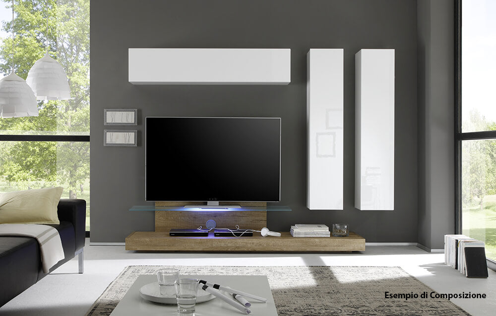 TV-Schrank mit Glasregal, das sich für jeden Einrichtungsstil eignet, ist dieses Möbelstück das ideale Element, um Ihren Wohnbereich mit der gesamten TFT-Markengarantie der Cube-Serie einzurichtenMerkmale: