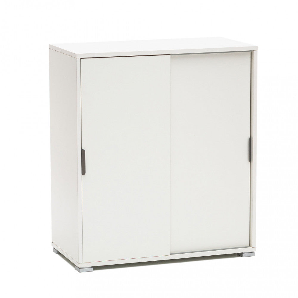 Schrank mit 2 Schiebetüren 75 x 38 x 85 h cm aus weißer zweischichtiger Spanplatte
