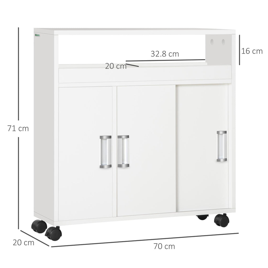 Badezimmerschrank mit Schiebetüren 70 x 20 x 71 cm, verstellbares Regal mit Rollen, weiß