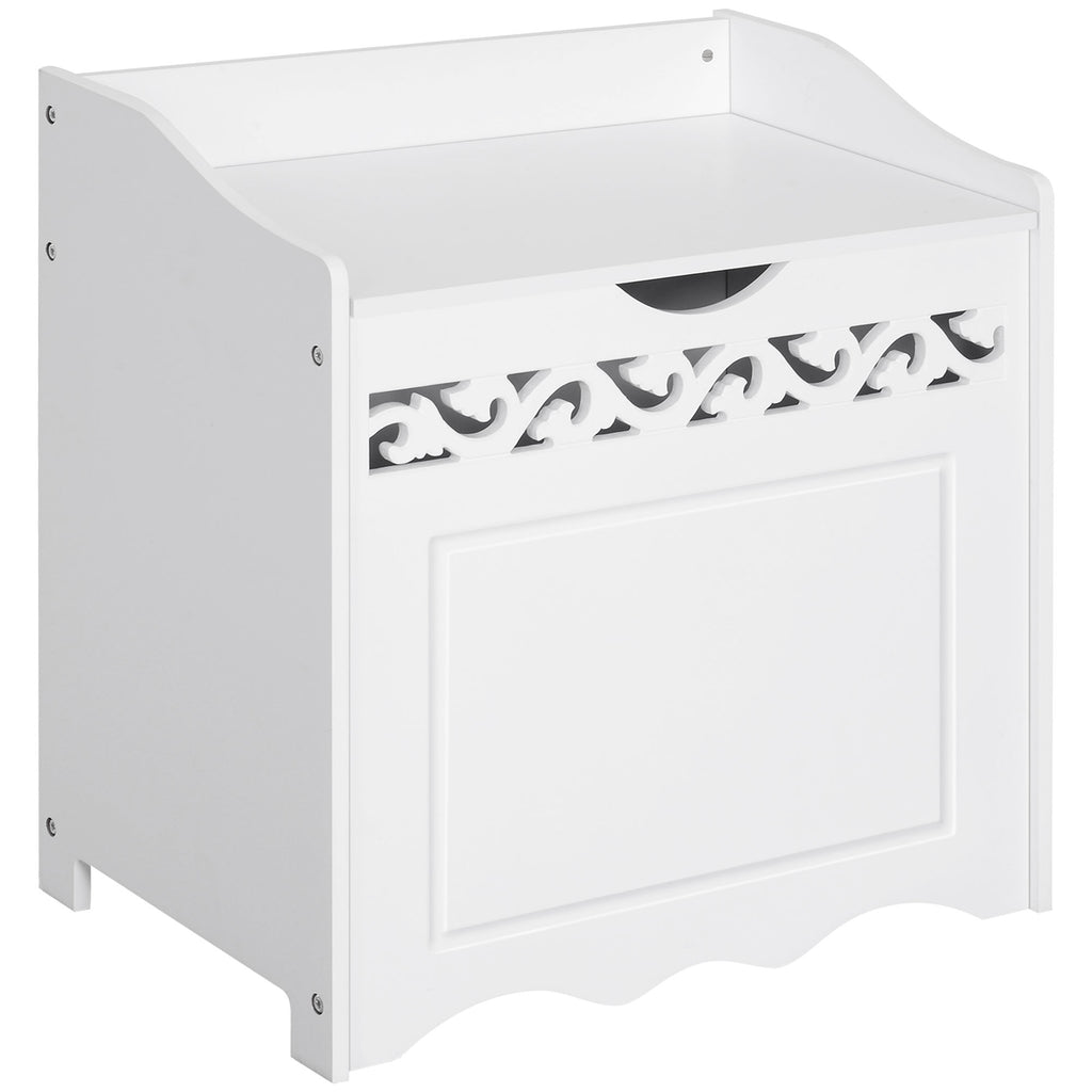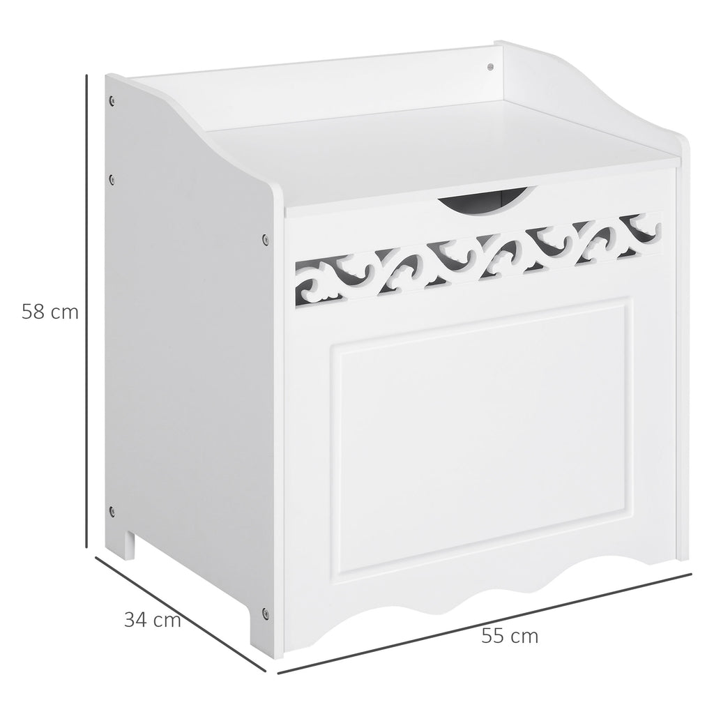 Badezimmerschrank aus Holz mit weißem Blumenmuster Wäschekorb 55x34x58 cm