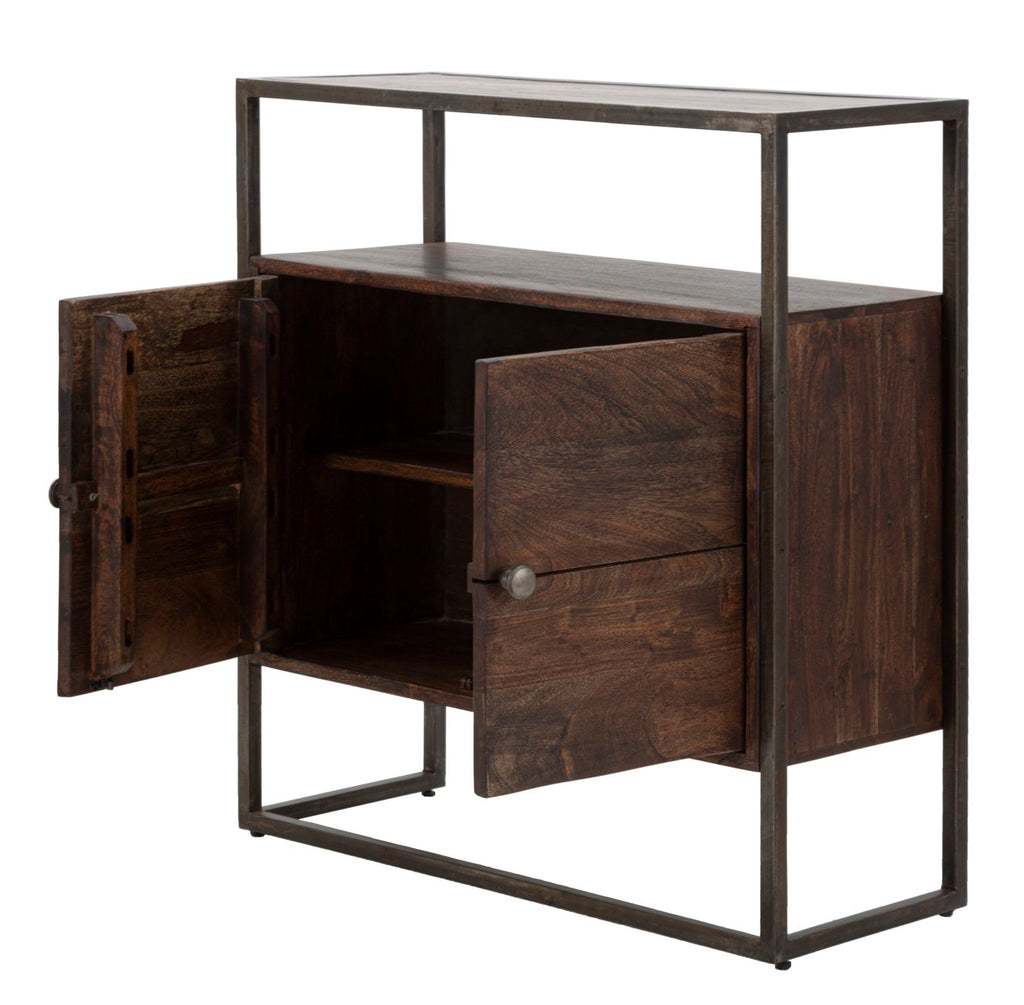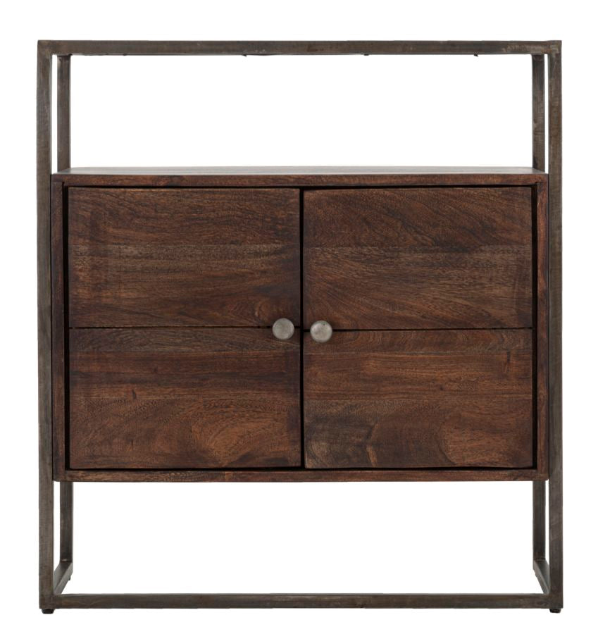 Schrank aus massivem Akazienholz mit 2 Türen, umrahmt von einer schwarzen Metallstruktur mit klaren und quadratischen Linien, die einem äußerst eleganten und klassischen Stück einen Hauch von Modernität verleihen.